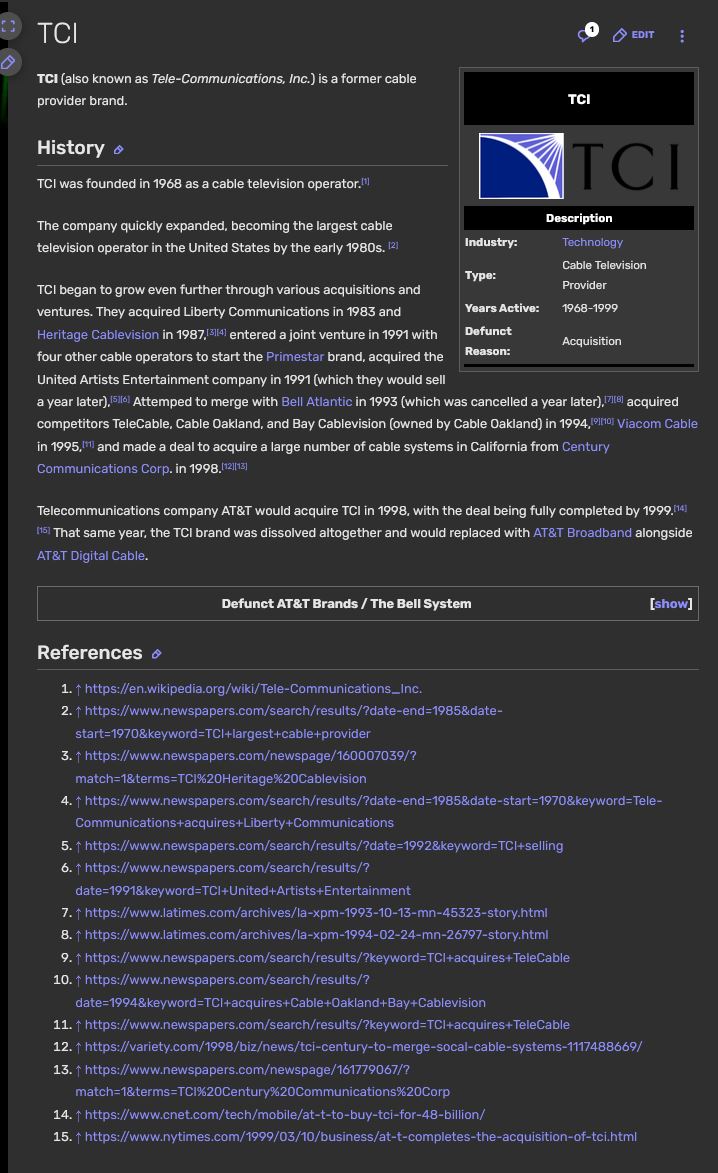 "By the early 1980s, [TCI] had become the largest cable television operator in the U.S." β Built TV systems, not broadband infrastructure